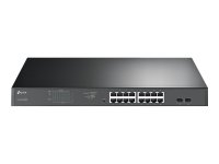 TP-Link JetStream TL-SG1218MPE - Přepínač - inteligentní - 16 x 10/100/1000 (PoE+) + 2 x gigabitů SFP - Lze montovat do rozvaděče - PoE+ (192 W) - AC 100 - 240 V