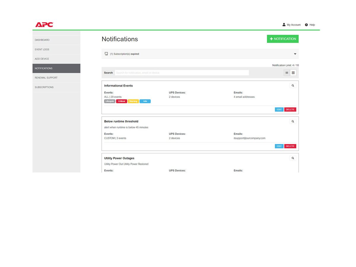 Mezi hlavní výhody plánu Standard patří vzdálené monitorování UPS se záznamem událostí až na 30 dní, automatická e-mailová oznámení, vzdálená distribuce firmwaru UPS s instalací jedním kliknutím, vzdálený autotest a diagnostika zvukových alarmů.