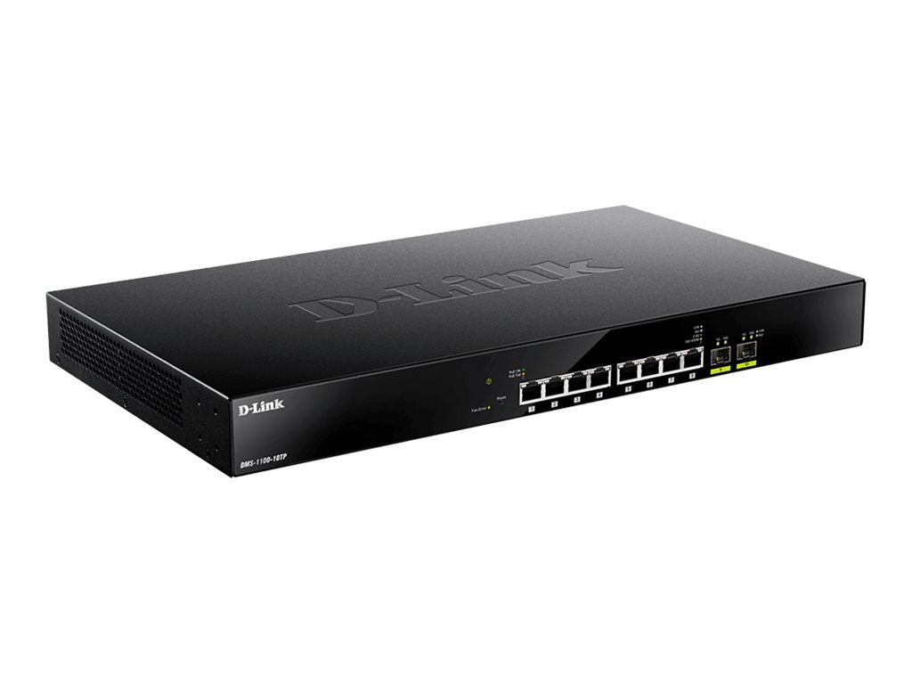 Řada D-Link DMS-1100 2,5 Gigabit Ethernet Smart Managed Switches je cenově výhodná řada 2,5 gigabitových přepínačů, které jsou schopny uspokojit řadu síťových potřeb v jakémkoli typu podniku. Tyto přepínače jsou vybaveny osmi 2,5gigabitovými přístupovými porty a dvěma 10gigabitovými uplinkovými porty SFP+ a jsou ideální pro nasazení vysoce výkonných přístupových bodů 802.11ac Wave 2 využívajících 2,5gigabitová připojení a zároveň poskytují 10gigabitové uplinky s rychlostí vedení pro optimální šířku pásma při přístupu do větší místní sítě.