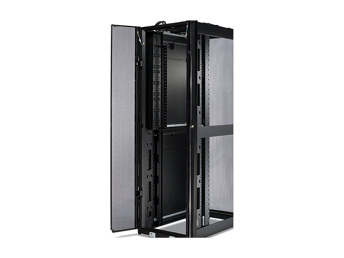 Spolehlivý rozvod napájení. Pro instalaci krytů serverů do skříní NetShelter není nutné další nářadí, což uživatelům umožňuje rychlou a snadnou montáž jednotek v zadní části skříně. Možnost svislé montáže umožňuje snadnou svislou montáž do stojanů a skříní a zabírá menší prostor, díky čemuž je možné do stojanu umístit více zařízení. Jednotky se svislou montáží jsou rozměrově optimalizovány do skříní NetShelter VX.