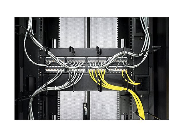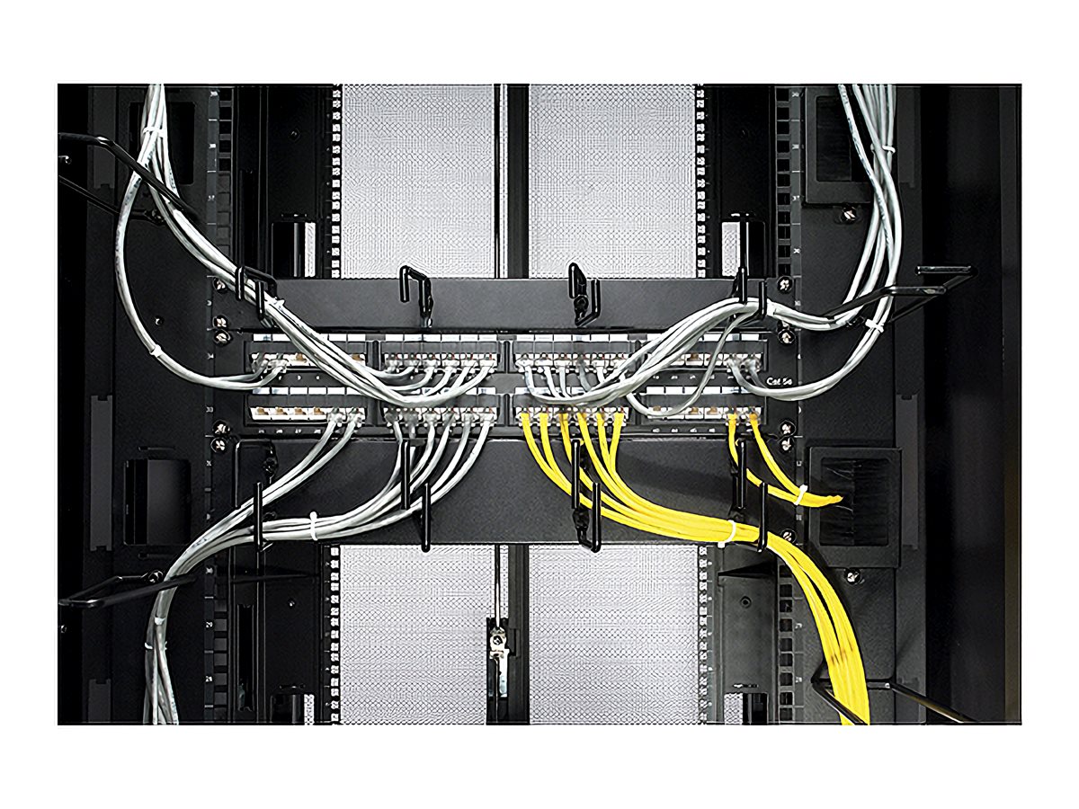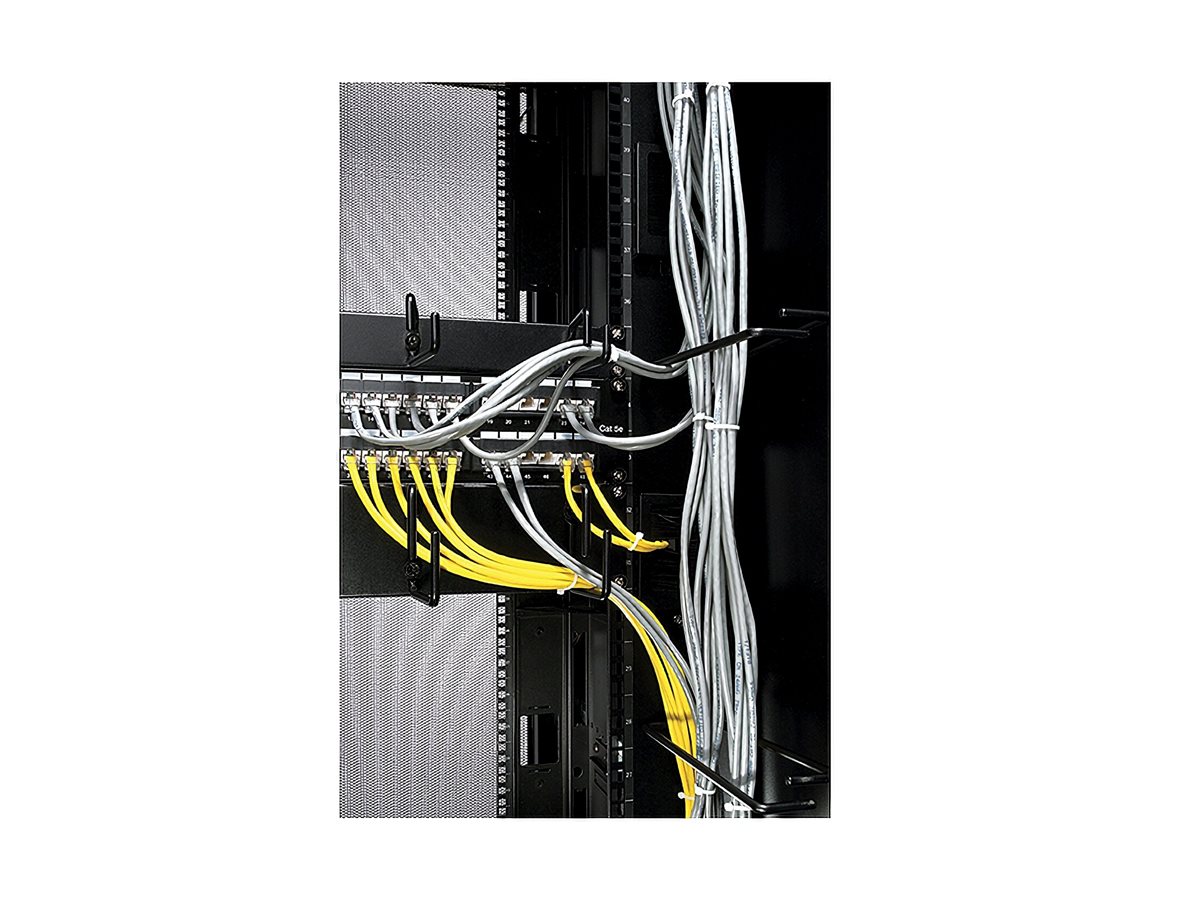 Hluboké kroužky pro vedení kabelů usnadňují vertikální vedení kabelů v typických síťových prostředích.