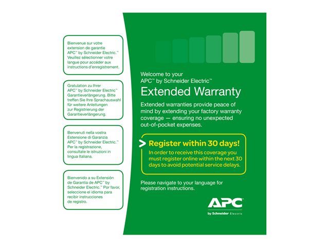 S programem prodloužené záruky APC budete mít jistotu, že v nepravděpodobném případě poruchy bude váš produkt rychle opraven nebo vyměněn, čímž se minimalizují prostoje. Tato záruka zaručuje bezplatné dodání dílů nebo jednotky následující pracovní den, abyste měli jistotu, že dostanete to, co potřebujete, jakmile to budete potřebovat.