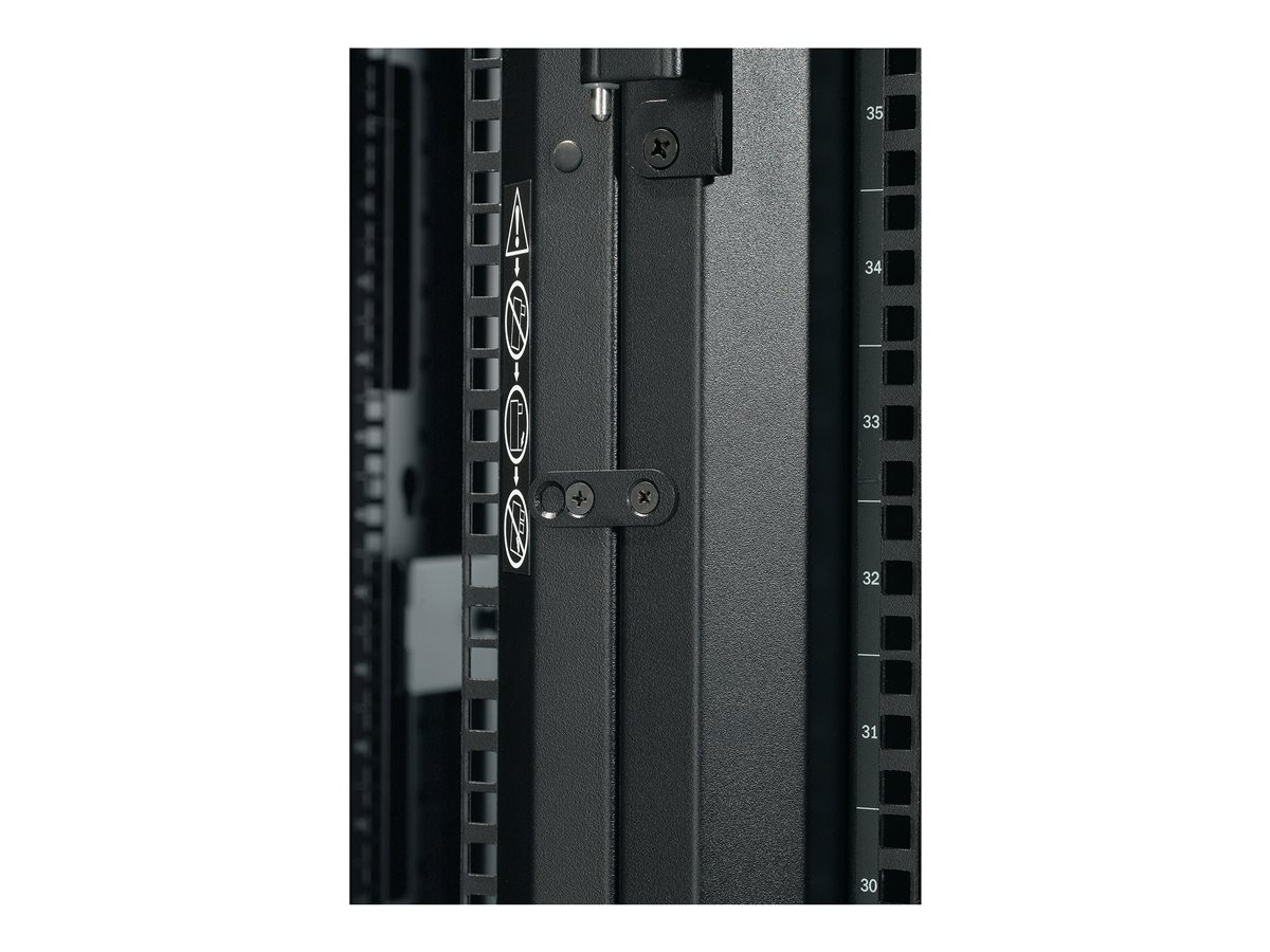 Uzamykatelná přední dvířka, zamykatelná zadní dvířka, funkce keyed alike (jedna klávesa pro více funkcí), zamykatelný postranní panel, dělené zadní dveře, boční panely s rychlospojkou, kolečka, horní a spodní body vstupu kabelů, zemnící sada, dvířka pro rychlý přístup, zadní přídavný kanál, upravitelné vertikální připevňovací kolejnice |