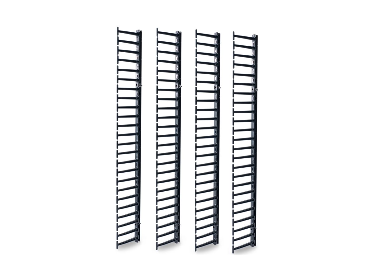 Organizéry kabelů obsahují vysokokapacitní tenká vodítka kabelů, která zajišťují maximální kapacitu každého stojanu a nabízí pevnou konstrukci zamezující ohýbání kabelů procházejících kabelovým kanálem.