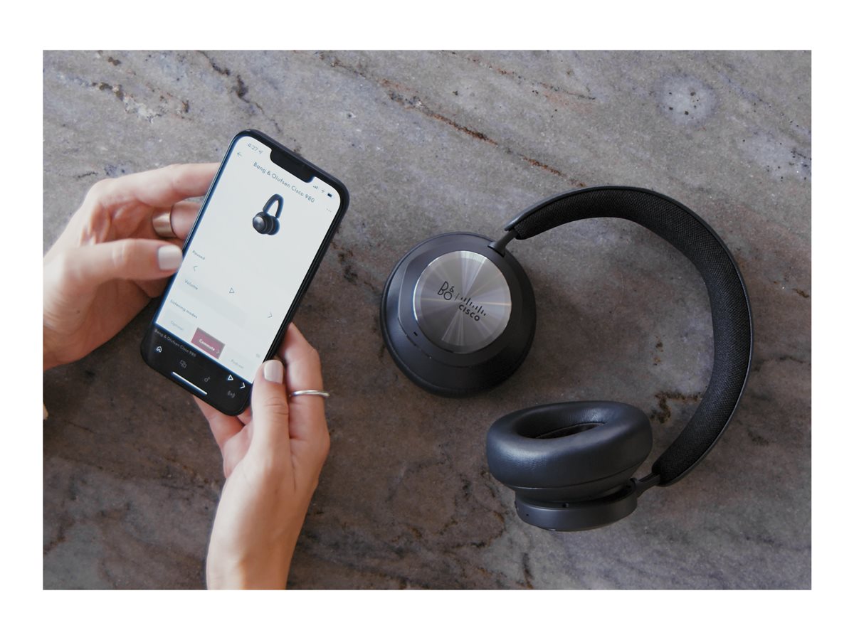 Bang & Olufsen Cisco 980 jsou prémiová bezdrátová sluchátka přes uši, která poskytují poutavý zvukový zážitek při telefonních hovorech, videokonferencích a poslechu hudby. Díky rozhraní Bluetooth 5.1, integraci se službou Webex, ovládání hovorů na sluchátku a zabezpečení podnikové úrovně poskytuje náhlavní souprava nejlepší konektivitu a funkčnost ve své třídě. Náhlavní souprava je vybavena technologií, která zlepšuje komunikaci díky geometricky umístěným mikrofonům, které izolují hlas uživatele a zároveň potlačují hluk v pozadí. A díky celodennímu pohodlí nikdy nedělejte kompromisy mezi designem, zvukem a obchodní komunikací.