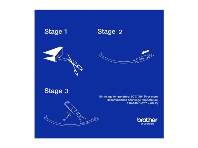 Když se potištěná kazeta umístí na kabel a zahřeje se horkovzdušnou pistolí, kazeta se smrští a pevně uchytí kabel. Není potřeba žádné lepidlo, což zajišťuje, že se smršťovací trubička ani v teplém prostředí neodlepí od kabelu.