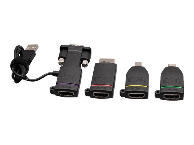 | Popis výrobku | C2G Universal 4K HDMI Adapter Ring with Mini DisplayPort, DisplayPort, USB C, Lightning, and VGA - M/F - video adapter kit - Mini DisplayPort / DisplayPort / HDMI / USB / VGA |