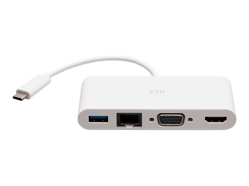 | Popis výrobku | C2G USB C to HDMI, VGA, USB A & RJ45 Adapter - 4K 30Hz - White - dokovací stanice - USB-C / Thunderbolt 3 - VGA, HDMI - 1GbE |