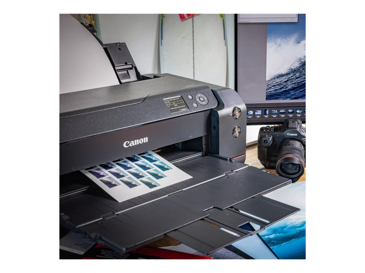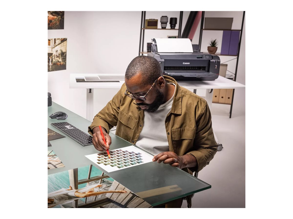 Canon imagePROGRAF PRO-1100 je navržen tak, aby přesně a všestranně splňoval dynamické požadavky velkoformátového tisku. Její 17palcová tisková kapacita v kombinaci s maximální velikostí média 431,8 x 558,8 mm umožňuje tisk na různé typy médií včetně běžného papíru a fotografického papíru, což zaručuje kvalitní výsledky pro jakýkoli projekt. Tiskárna pracuje efektivně díky funkci mobilního tisku, která podporuje Apple AirPrint, Canon Print Service a další bezdrátové služby, což umožňuje bezproblémové připojení a pohodlí na cestách.