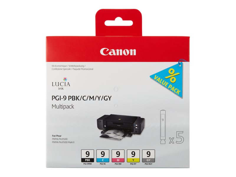 Canon PGI-9 PBK/C/M/Y/GY Multi-Pack - 5-balení - šedá, žlutá, azurová, purpurová, foto černá - originální - inkoustový zásobník |