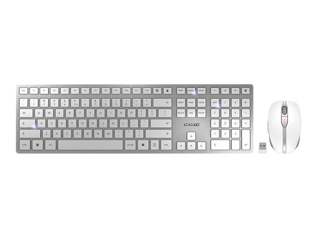 | Popis výrobku | CHERRY DW 9100 SLIM - klávesnice a sada myši - USA se symbolem Euro - bílá, stříbrná Vstupní zařízení |