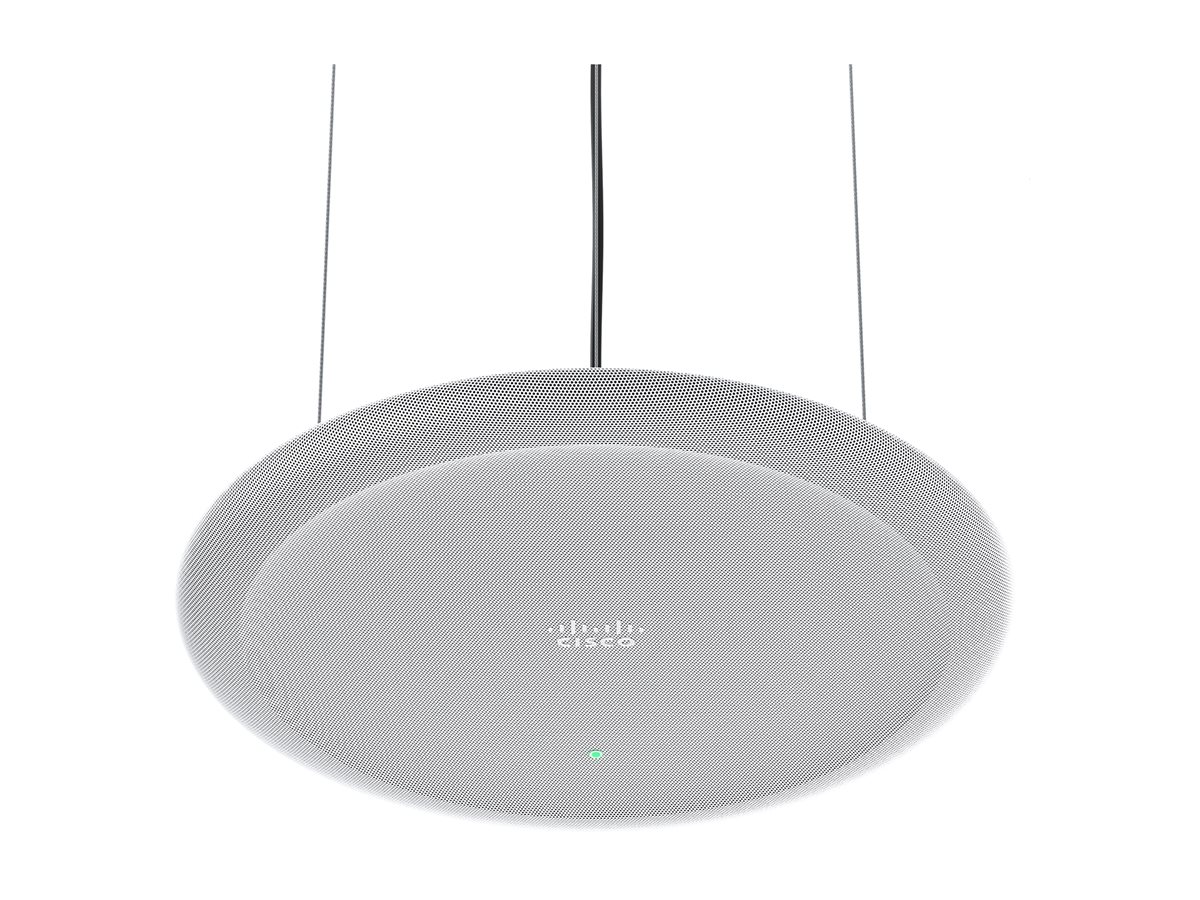 Stropní mikrofon Cisco Ceiling Microphone Pro je navržen pro bezproblémovou integraci do konferenčního prostředí a díky technologii adaptivního formování paprsku poskytuje čistý zvuk. Díky frekvenční odezvě v rozsahu 120 - 20 000 Hz a odstupu signálu od šumu 70 dB zajišťuje tento mikrofon čistou kvalitu zvuku, takže je vhodný pro schůzky a prezentace. Je vybaven funkcí potlačení šumu umělou inteligencí, která umožňuje efektivní potlačení šumu a zvyšuje soustředění na hlas během diskusí.