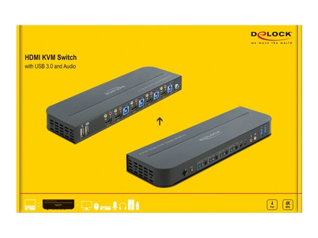 Tento KVM switch od Delocku je vhodným řešením pro připojení čtyři počítače s HDMI ovým výstupem k jednomu HDMI monitoru.
