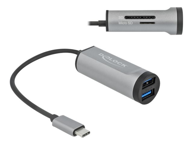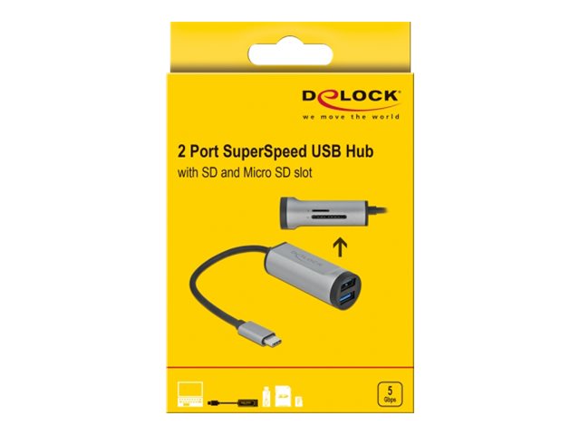| Popis výrobku | Delock 2 Port USB 3.2 Gen 1 Hub with USB Type-C Connection and SD + Micro SD Slot - rozbočovač - 2 porty |