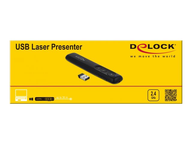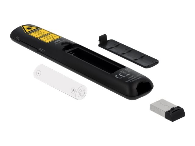 Toto bezdrátové laserové ukazovátko značky Delock slouží jako praktický pomocník k předvádění prezentací. Pomocí dodaného USB nanopřijímače jej lze snadno připojit k portu USB. Při přepravě jej lze připevnit k mírně magnetické štěrbině na dolní straně laserového ukazovátka.