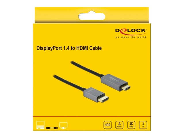 Tento kabel značky Delock umožňuje připojení monitoru HDMI nebo projektoru k PC nebo laptopu s rozhraním DisplayPort.