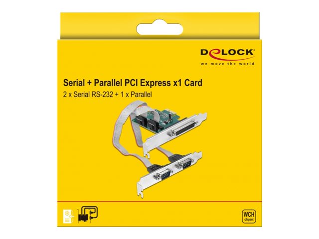 PCI Express card od Delocku rozšiřuje PC o dva externí sériové porty a o jeden paralelní port. K této kartě mohou být připojena různá zařízení jako jsou skener, tiskárna, myš atd.