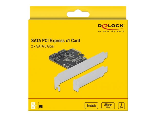 Tato PCI Express karta od Delocku rozšiřuje PC o dva interní porty SATA. Ke kartě mohou být připojena různá zařízení jako jsou např. SSD, hard disky, DVD jednotky atd.