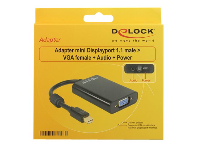 | Popis výrobku | Delock Adapter mini Displayport 1.1 male > VGA female + Audio + Power - nástroj pro převod videa - černá, bílá |