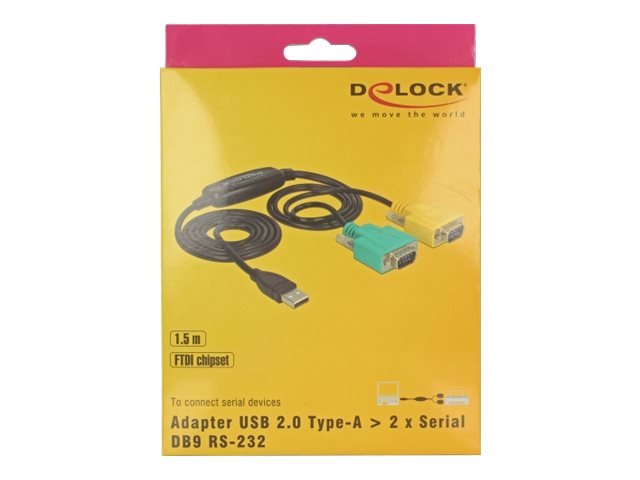 | Popis výrobku | Delock Adapter USB 2.0 Type-A > 2 x Serial DB9 RS-232 - USB / sériový kabel - USB do DB-9 - 1.5 m |