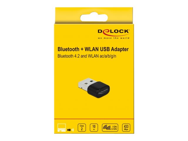 | Popis výrobku | Delock Bluetooth 4.2 and Dualband WLAN ac/a/b/g/n 433 Mbps USB Adapter - síťový adaptér - USB 2.0 |