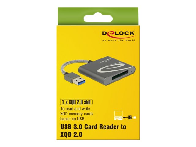 Čtečka karet od Delocku může být použita pro čtení a zápis na XQD paměťové karty. Čtečka karet může být připojena k PC nebo notebooku přes rozhranní USB Type-C.