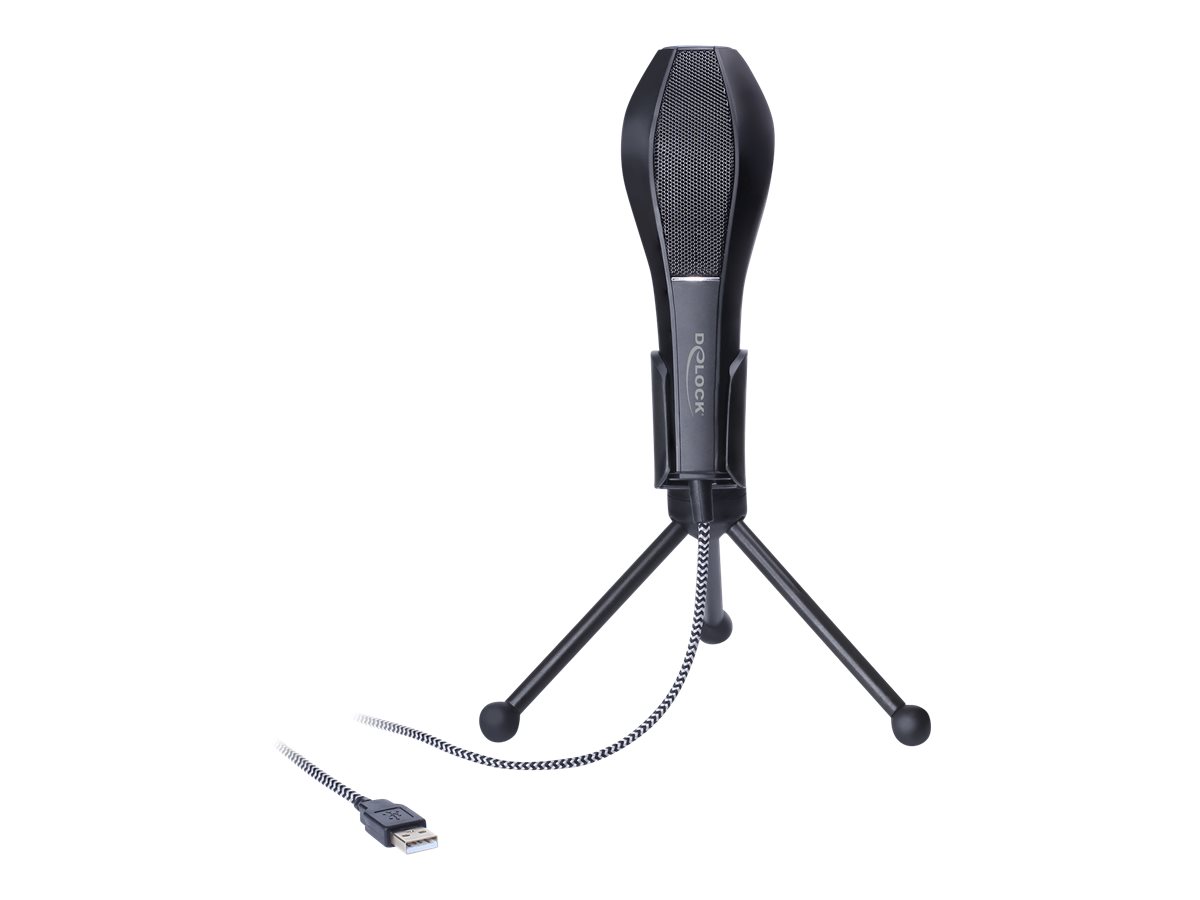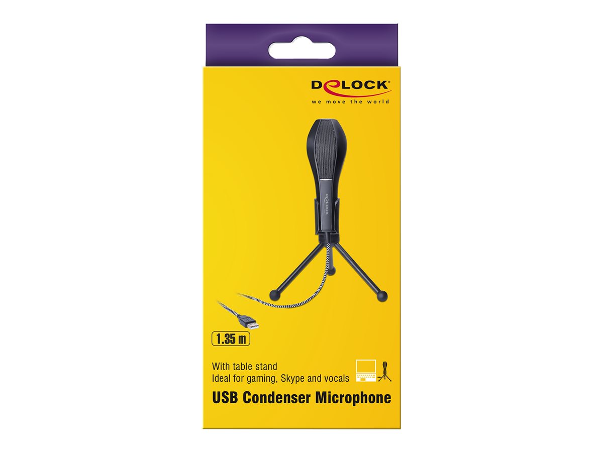 Tento profesionální USB mikrofon od Delocku může být použit pro vysoce kvalitní přenos mluvené řeči a hlasu. Mikrofon má kruhový vzor (všesměrový) a proto ideálně zachycuje akustický signal. Díky vysokému výkonu, nízkému vlastnímu šumu a precisnímu provedení se optimálně zaznamenávají i nejjemnější zvuky. Stolní stojan lze v případě potřeby skládat a snadno přepravovat.
