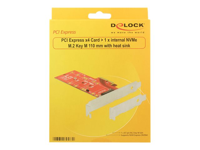 | Popis výrobku | Delock PCI Express x4 Card > 1 x internal NVMe M.2 Key M 110 mm with heat sink - řadič úložiště - M.2 Card - PCIe 3.0 x4 |