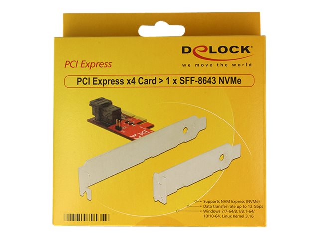| Popis výrobku | Delock PCI Express x4 Card > 1 x internal SFF-8643 NVMe - řadič úložiště - M.2 Card - PCIe 3.0 x4 |
