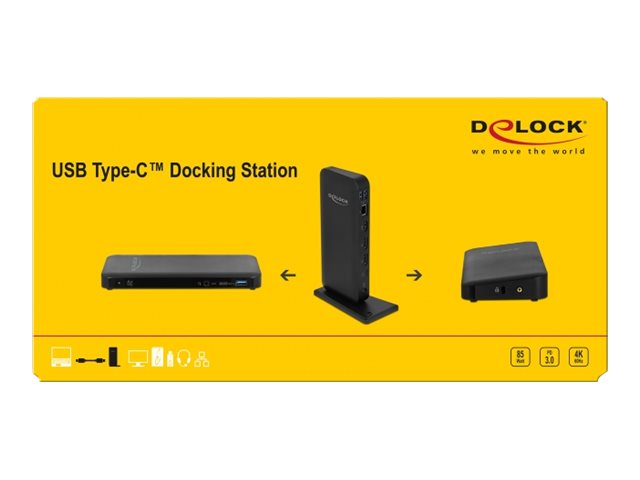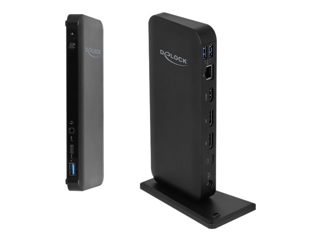Tato dokovací stanice od Delocku může být připojena k počítače s portem USB-C režim DP Alt nebo Thunderbolt 3 a nabízí tak různá rozhraní. Na výstupech DisplayPort a HDMI lze provozovat až tři monitory současně. Čtyři integrované porty USB umožňují používání periferních zařízení a funkčnost je doplněna o možnost připojení sluchátek a sítě Gigabit.