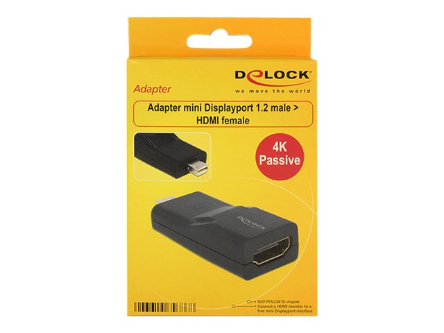 Tento adaptér od Delocku umožňuje připojení např. monitoru s HDMI skrze volné rozhraní mini Displayport. Adaptér podporuje rozlišení až do Ultra HD (4K) a je zpětně kompatibilní s Full-HD 1080p.