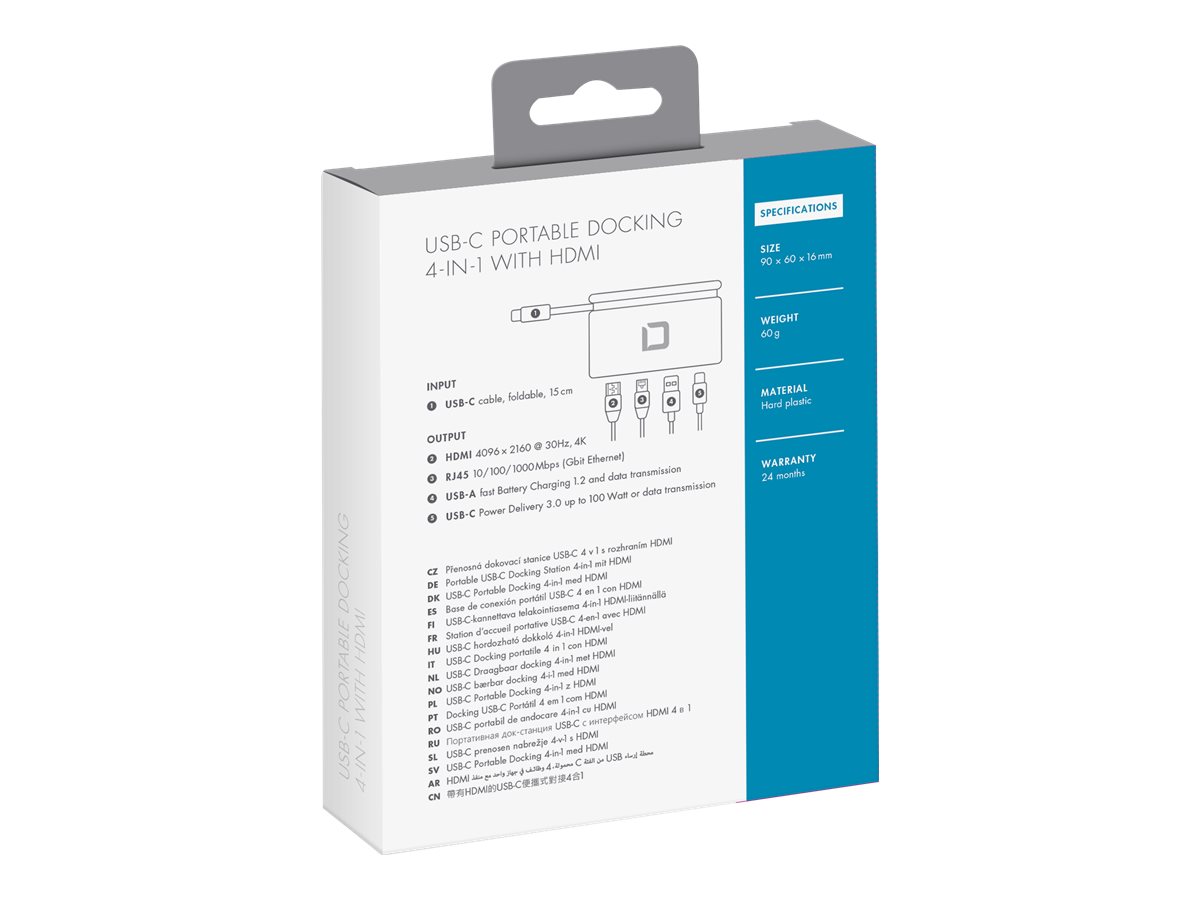 | Popis výrobku | DICOTA USB-C Portable Docking 4-in-1 with HDMI - dokovací stanice - USB-C - HDMI |