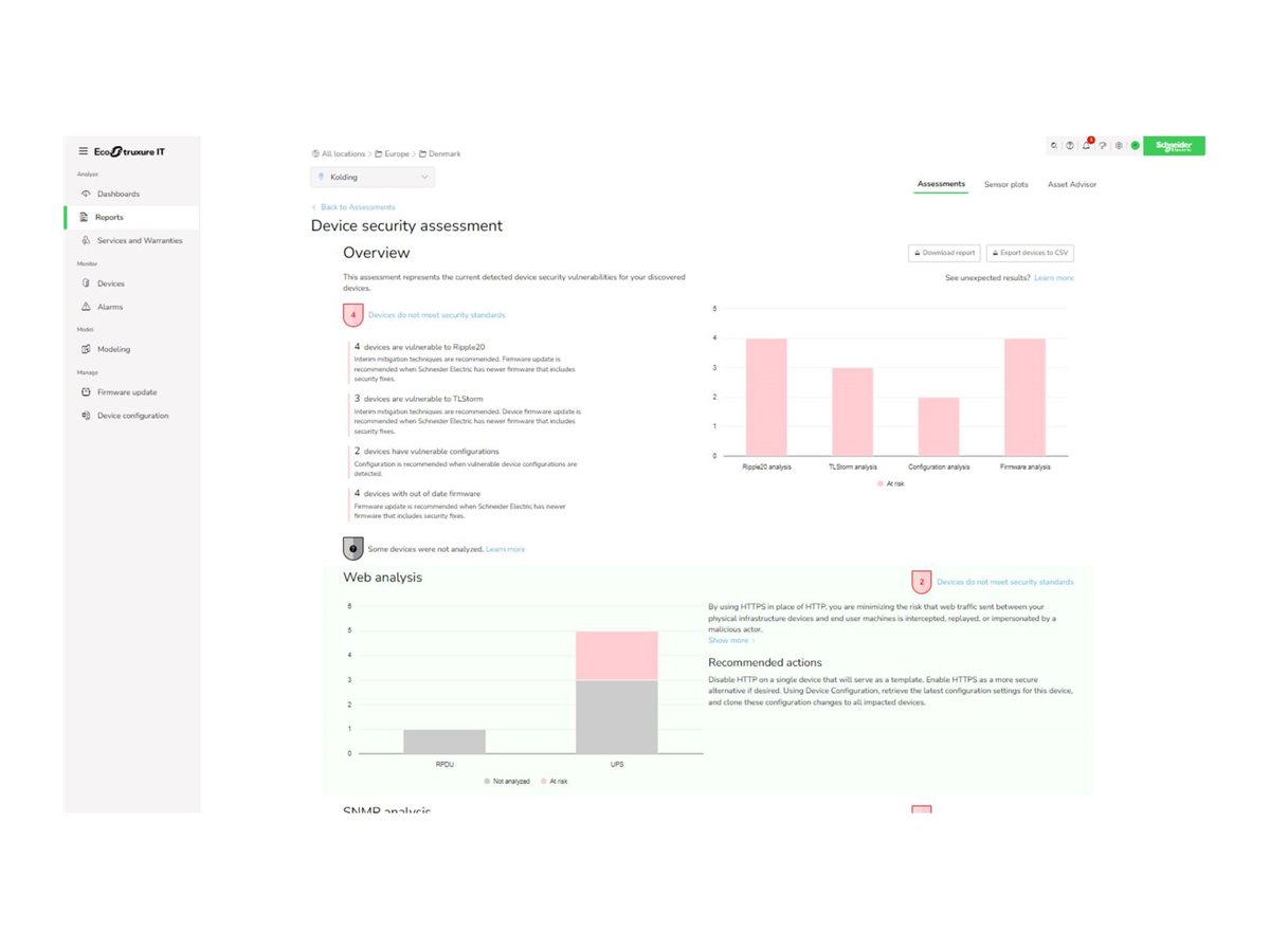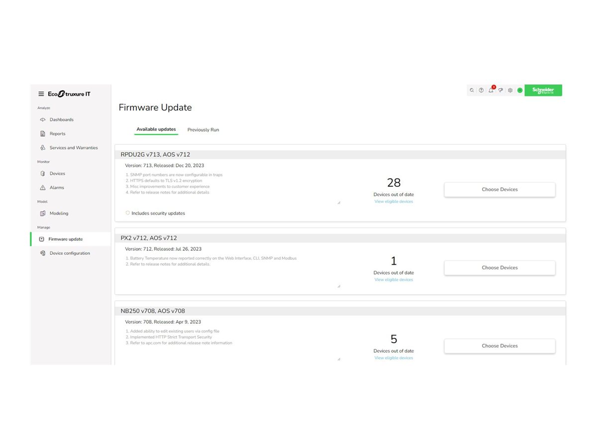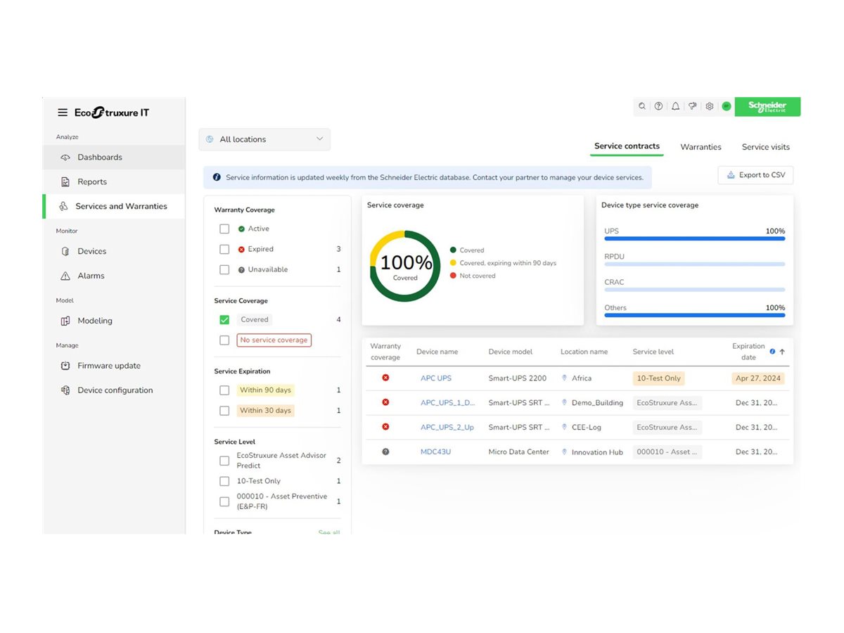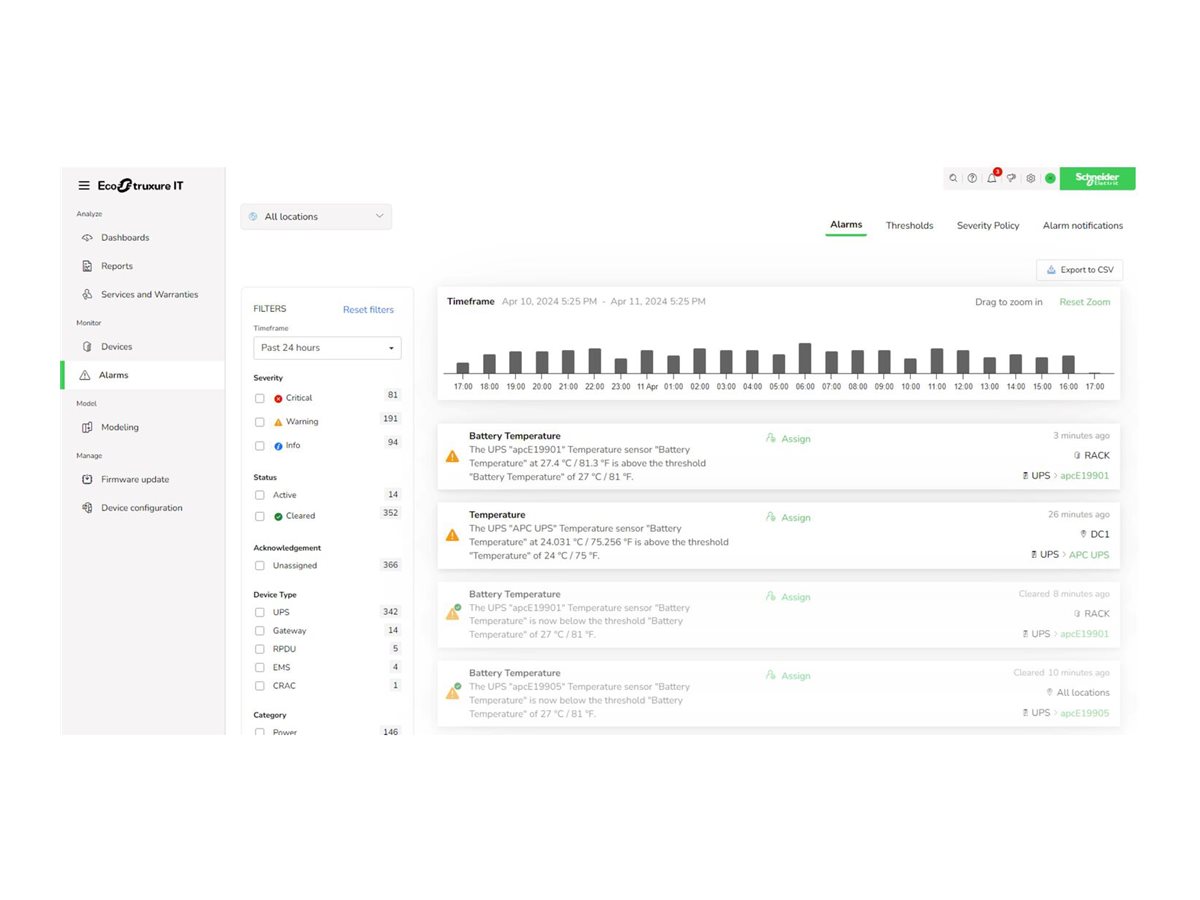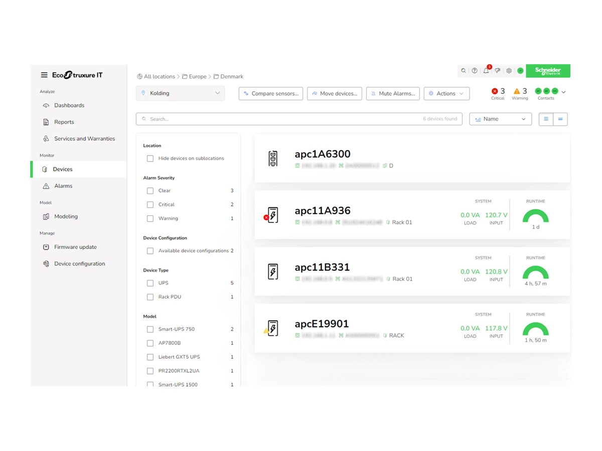 APC EcoStruxure IT Expert nabízí funkce vzdáleného monitorování a správy datových center, které podporují efektivní dohled nad výkonem infrastruktury. Tato aplikace pomáhá provozovatelům datových center sledovat stav systému, včas odhalovat problémy a optimalizovat provozní efektivitu. Díky centralizovanému přehledu o prostředí datových center pomáhá zajistit spolehlivý provoz s minimálními výpadky. Její digitální platforma podporuje plynulou vzdálenou správu, což usnadňuje udržování optimálních podmínek a rychlou reakci na incidenty. S důrazem na zjednodušení složitých úkolů v datových centrech zvyšuje APC EcoStruxure IT Expert provozní spolehlivost a efektivitu všech pracovních postupů v datových centrech.