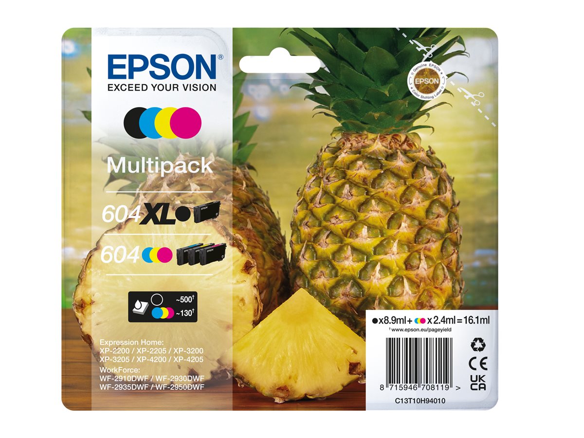| Popis výrobku | Epson 604/604XL Multipack - 4-balení - kapacita XL (černá) + Standardní - černá, azurová, purpurová, žlutá - originální - inkoustová cartridge |