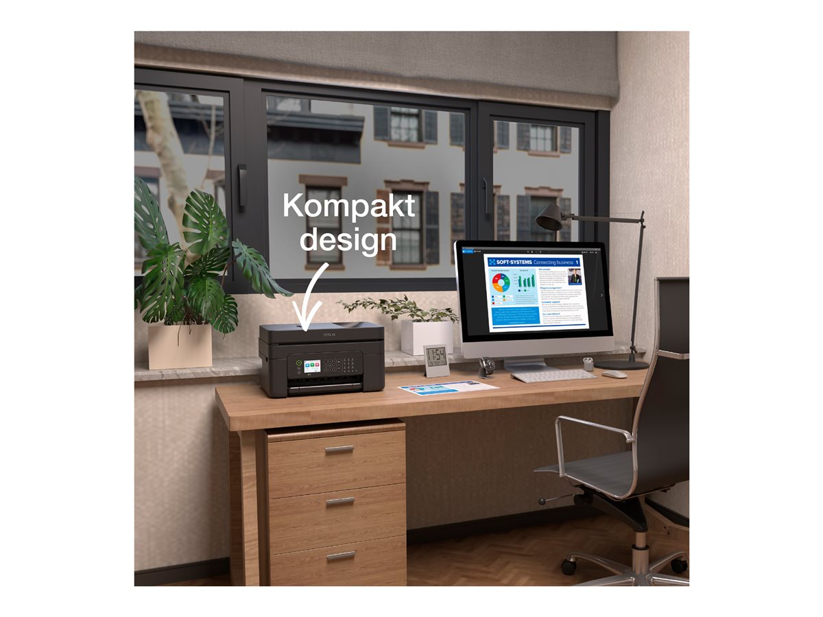 Tato stylová, kompaktní a snadno použitelná multifunkční inkoustová tiskárna dokáže snížit množství odpadu a náklady díky oboustrannému tisku formátu A4 a cenově dostupným jednotlivým inkoustům. Zrychlete kopírování, skenování a faxování více stránek pomocí automatického podavače dokumentů (ADF), technologie skenování do cloudu a velkého 6,1cm displeje LCD. Tisk na cestách je snadný díky Wi-Fi, Wi-Fi Direct, Epson Connect a Apple AirPrint.