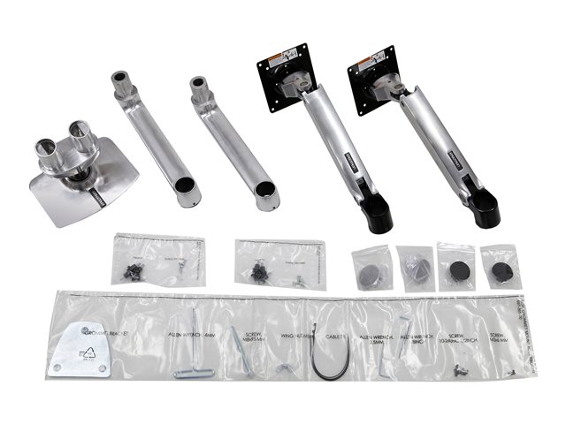 Svorka k montáži na stůl, úchyt průchodky, žerď, 2 polohovatelná ramena, 2 držáky rozšíření, konzola ve tvaru T, základna |