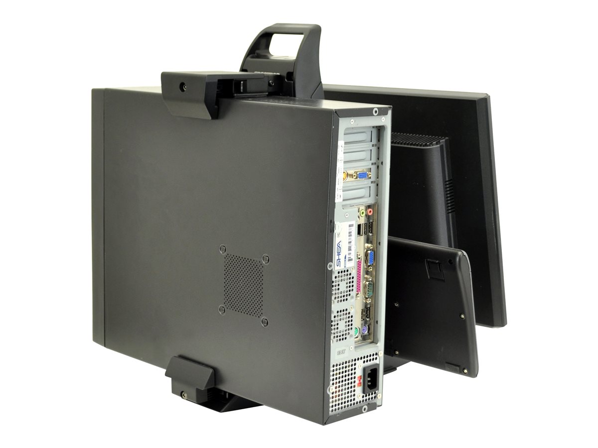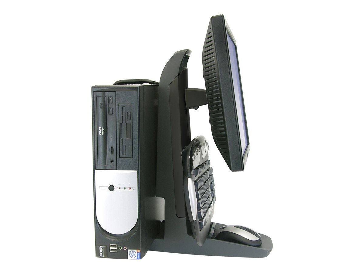 | Funkce | Technologie Constant Force Motion, zvednutí 12,7 cm, naklonění 30°, 360-stupňová panoramatická rotace, rotace 360 stupňů, zobrazení na výšku nebo na šířku, VESA 100 x 100 mm, VESA 75 x 75 mm, nastavitelný držák počítače, úložiště na klávesnici/myš |