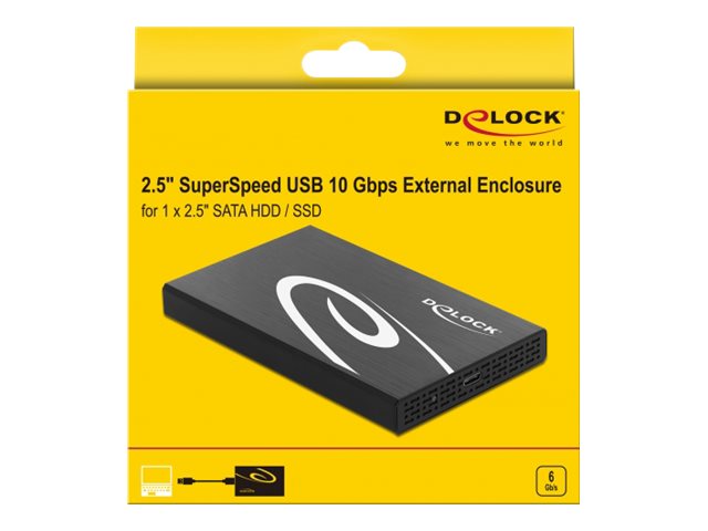 | Popis výrobku | Delock External Enclosure for 2.5" SATA HDD / SSD with SuperSpeed USB 10 Gbps (USB 3.1 Gen 2) - kryt úložiště - SATA 6Gb/s - USB 3.1 (Gen 2) |