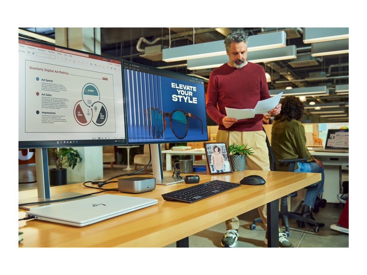 HP 725 je všestranná bezdrátová klávesnice navržená tak, aby zvýšila produktivitu a zároveň umožnila snadné používání. Díky kompatibilitě s více zařízeními mohou uživatelé plynule přepínat mezi počítačem, tabletem a dalšími zařízeními, takže je vhodná pro domácí i kancelářské prostředí. Rozložení QWERTY plné velikosti a numerická klávesnice zajišťují pohodlné psaní, zatímco funkce nastavitelné výšky umožňuje přizpůsobit ergonomii. Klávesnice je dobíjecí, napájí ji SuperCapacitor, což uživatelům umožňuje dlouhodobé používání bez častého přerušování nabíjení.