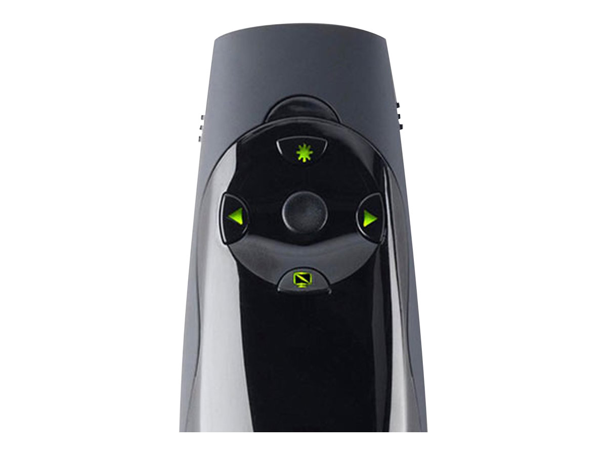Převezměte kontrolu nad místnosti a kurzorem počítače pomocí prezentačního zařízení Kensington Expert s červeným laserovým ukazovátkem s ovládáním kurzoru. S tímto nejlepším bezdrátovým prezentačním zařízením nemusíte nad ničím přemýšlet, protože všechno je intuitivní. Prezentační zařízení Kensington Expert je právě to, co potřebujete. Nyní se můžete soustředit na obdiv publika a neřešit fungování prezentačního zařízení. Jednoduchý design se čtyřmi tlačítky umožňuje snadnou orientaci v prezentacích Keynote nebo PowerPoint. Pomocí červeného laseru jako ukazovátka můžete odkudkoli zdůraznit klíčové myšlenky. Avšak někdy prostě nestačí jen ukázat. To je chvíle, kdy do hry vstupuje ovládání kurzoru. Pomocí jednoduchého pohybu přepínačem můžete přepínat režimy prezentace a ovládání kurzoru. Výkonné dálkové ovládání s frekvencí 2,4 GHz odolává rušení a umožňuje ovládat aplikace Keynote nebo PowerPoint až na vzdálenost 50 metrů (150 stop). USB přijímač ukládá data uvnitř prezentačního zařízení, takže se nemusíte obávat jejich ztráty. Pro některá bezdrátová prezentační zařízení mohou představovat tmavé místnosti problém. Prezentační zařízení Kensington Expert má však podsvícená tlačítka, díky čemuž vždy najdete to správné tlačítko. K dispozici je také indikátor vybití baterie, který vás ochrání před nepříjemným překvapením.