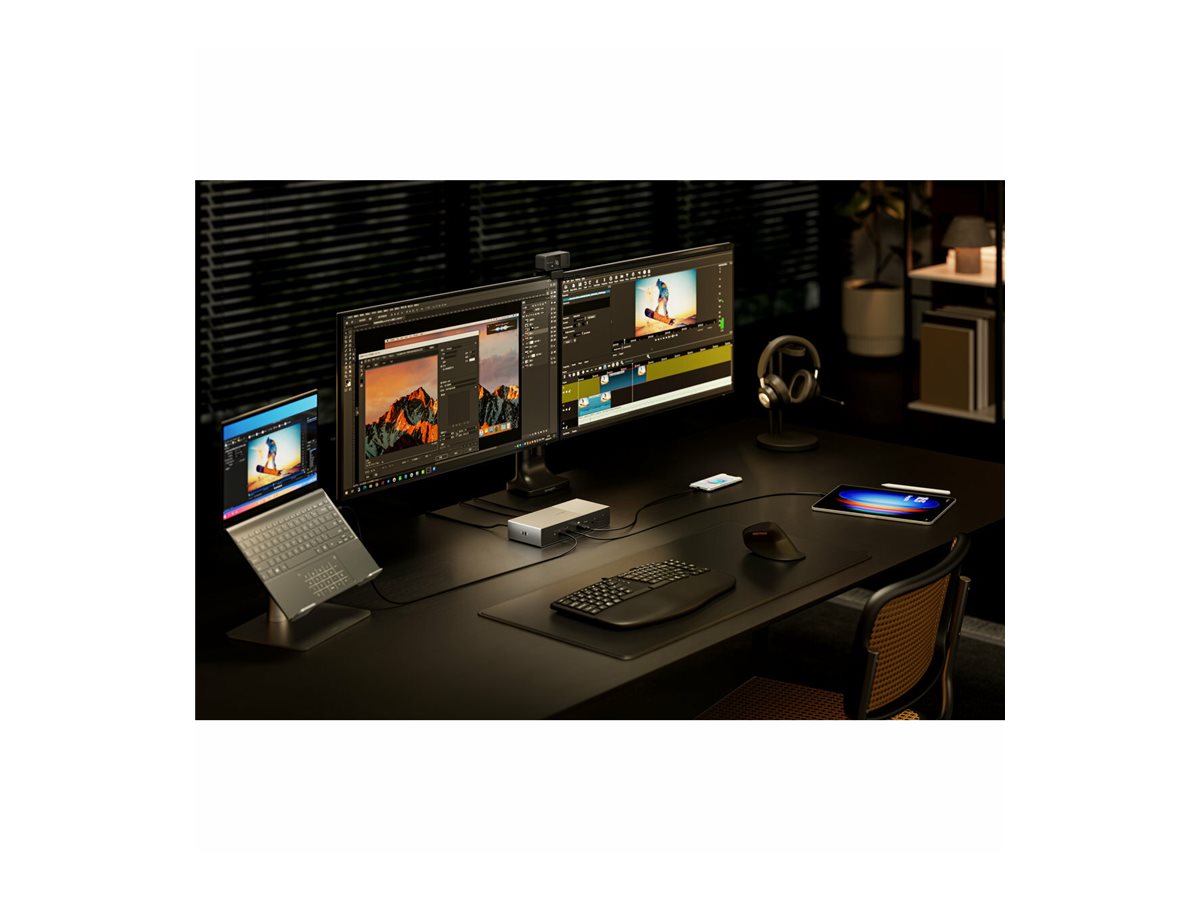 | Vlastnosti | 100% recyklovaný hliník, patice pro bezpečnostní zámek (kabelový zámek se prodává zvlášť), Zero Footprint Mounting, DockWorks, až 140W dodávka energie |