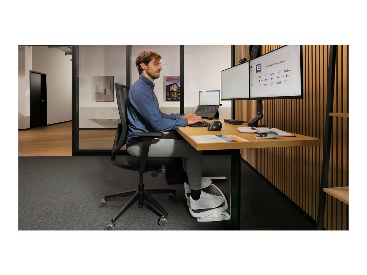 Opěrky SoleMate Footrest zlepšují držení těla a oběh krve, ulevují nohám a chodidlům, když pracujete u stolu. Výškové nastavení a sklápění zajišťuje maximální pohodu pro kotníky, kyčle a dolní část zad. Systém barevného kódování SmartFit určuje nejlepší ergonomické nastavení.