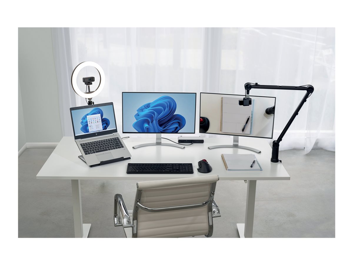 Integrovaná krytka objektivu, kontrolka LED, kompatibilní s Google Meet, kompatibilní s Microsoft Teams, komptabilní se Zoom, manuální otáčení 360° / náklon 37°, kompatibilní s prostředím Kensington, ePTZ |