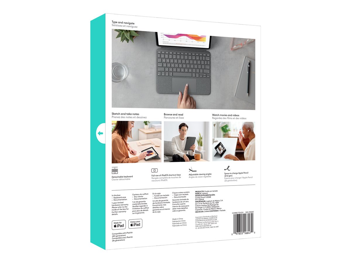 | Popis výrobku | Logitech Combo Touch - klávesnice a pouzdro - s trackpad - QWERTY - španělská - oxfordská šedá Vstupní zařízení |