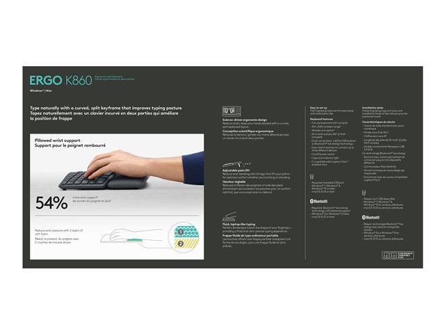 | Popis výrobku | Logitech ERGO K860 - klávesnice - skandinávské jazyky Vstupní zařízení |