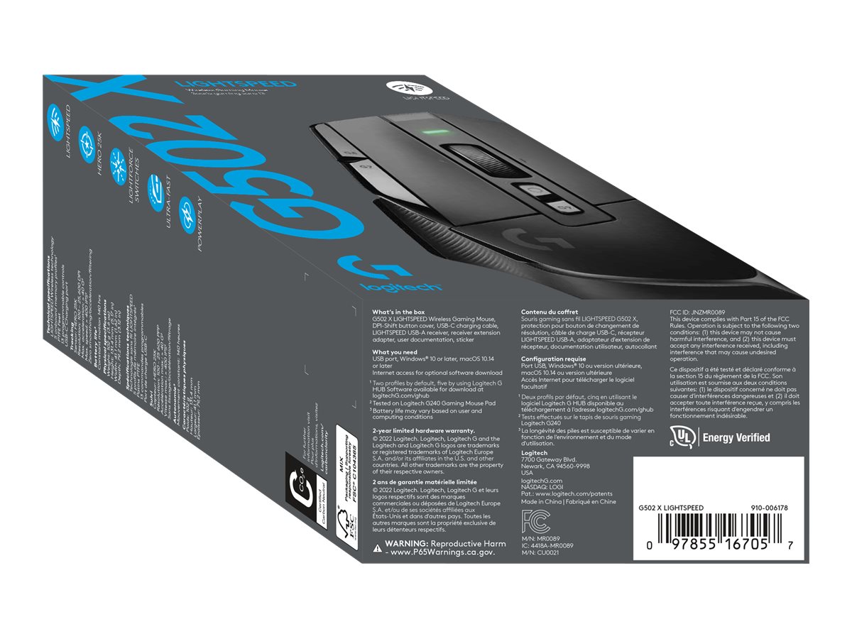 | Popis výrobku | Logitech G G502 X LIGHTSPEED - myš - 2.4 GHz - černá |