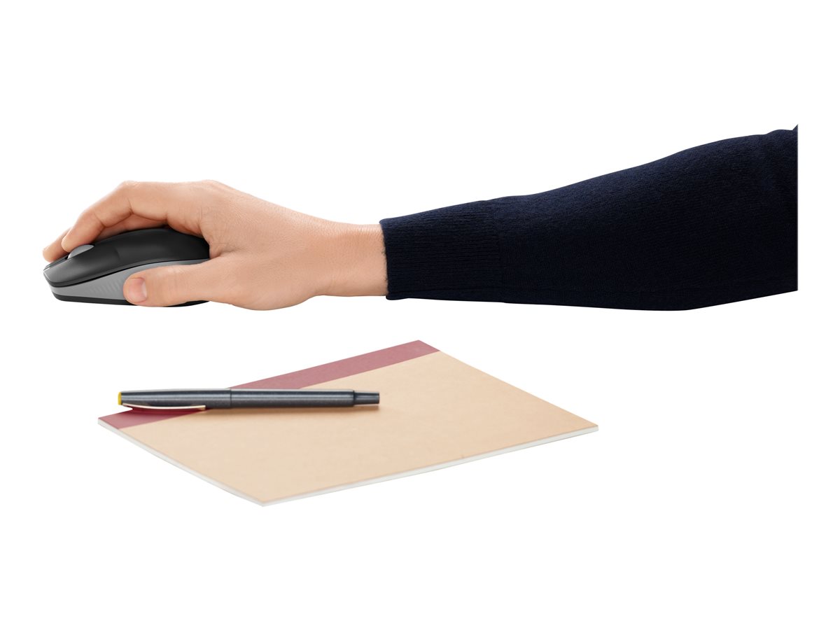 Logitech M190 je bezdrátová myš plnohodnotné velikosti s pohodlným profilovaným tvarem, který kopíruje přirozené zakřivení středních a velkých rukou.