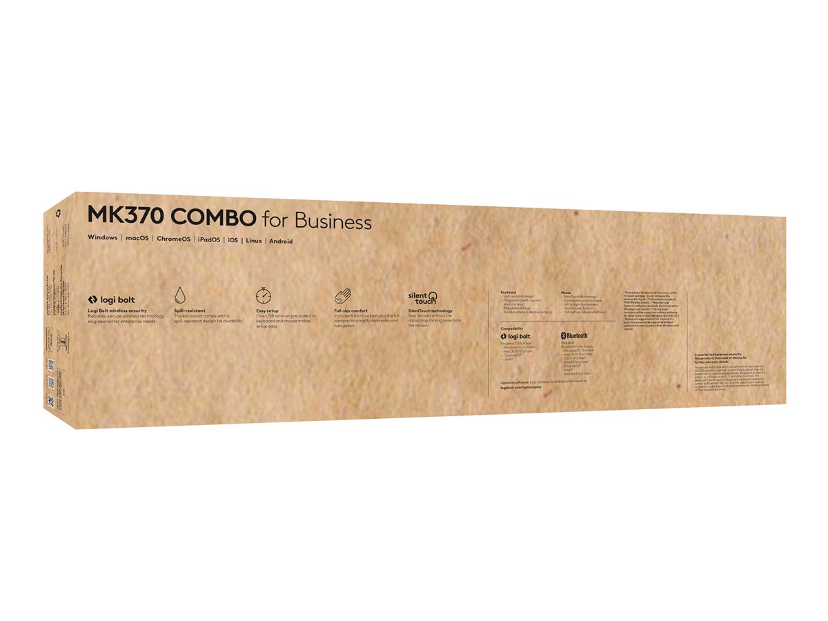 Logitech MK370 Combo for Business je komplexní sada klávesnice a myši navržená pro potřeby dnešních profesionálů. Nabízí všestrannost a podporuje širokou škálu zařízení včetně systémů Android, Apple iOS, ChromeOS, Mac a PC. Bezdrátové připojení zprostředkované technologií Bluetooth LE a přijímačem Logitech Logi Bolt USB zajišťuje spolehlivé připojení až na vzdálenost 10 m a poskytuje svobodu práce bez omezení kabely.