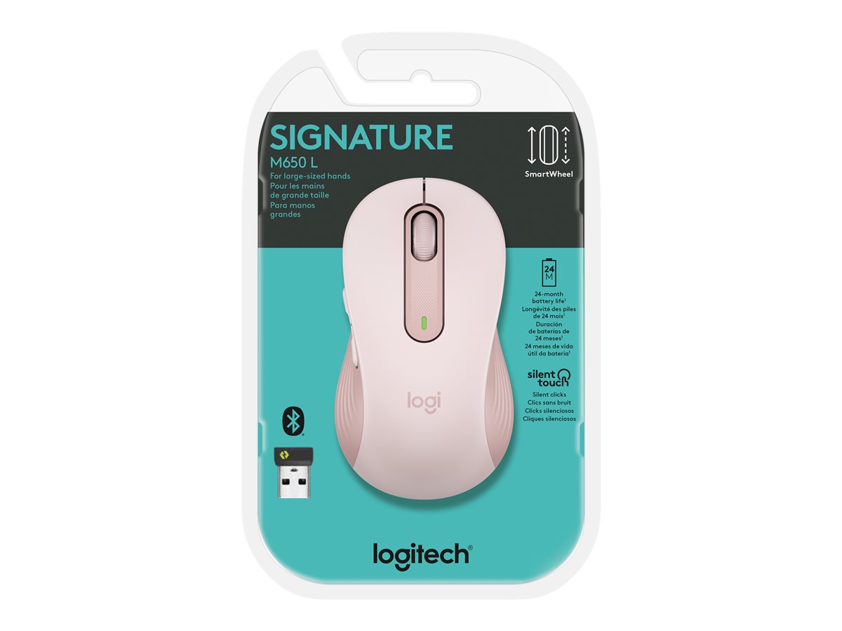 | Popis výrobku | Logitech Signature M650 L - myš - velká velikost - 2.4 GHz, Bluetooth - rùžová |