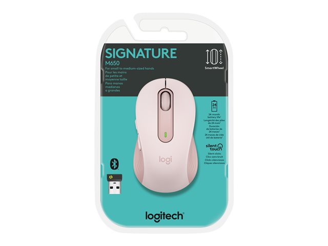 | Popis výrobku | Logitech Signature M650 - myš - 2.4 GHz, Bluetooth - rùžová |